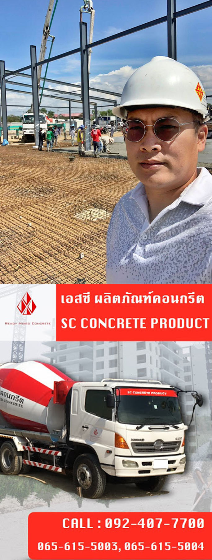 คอนกรีตผสมเสร็จ ปทุมธานี บริษัท เอสซี ผลิตภัณฑ์ คอนกรีต จำกัด เป็นผู้ผลิตและจำหน่ายส่งผลิตภัณฑ์คอนกรีต ราคาโรงงาน เสาเข็มไอไมโครไพล์ แผ่นพื้นคอนกรีตสำเร็จรูป สั่งจองคอนกรีตผสมเสร็จตรงจากแพลนท์ปูน เอสซี ผลิตภัณฑ์ คอนกรีต ปทุมธานี ให้ราคาถูก บริการส่งคอนกรีตผสมเสร็จถึงหน้างานทุกโครงการ ส่งทุกวัน ปริมาณเต็มคิวส่งตรงเวลา เทหมดไม่ค้างโม่ ลูกค้าต้องการใข้คอนกรีตกำลังอัดเท่าไร ใช้คอนกรีตกับงานอะไร ใช้เมื่อไร ใช้จำนวนกี่คิว ราคาคอนกรีตผสมเสร็จเท่าไร สอบถามได้ทุกวัน โทร. 09-2407-7700 ท่อระบายน้ำคอนกรีต แผ่นรั้วสำเร็จรูป บริการจัดส่งด่วนในพื้นที่ ปทุมธานี พระนครศรีอยุธยา นนทบุรี บางเลน นครปฐม และบริการจัดส่งถึงไซต์งานก่อสร้างทุกโครงการ ส่งถึงร้านค้าวัสดุก่อสร้างทุกจังหวัดทั่วประเทศ